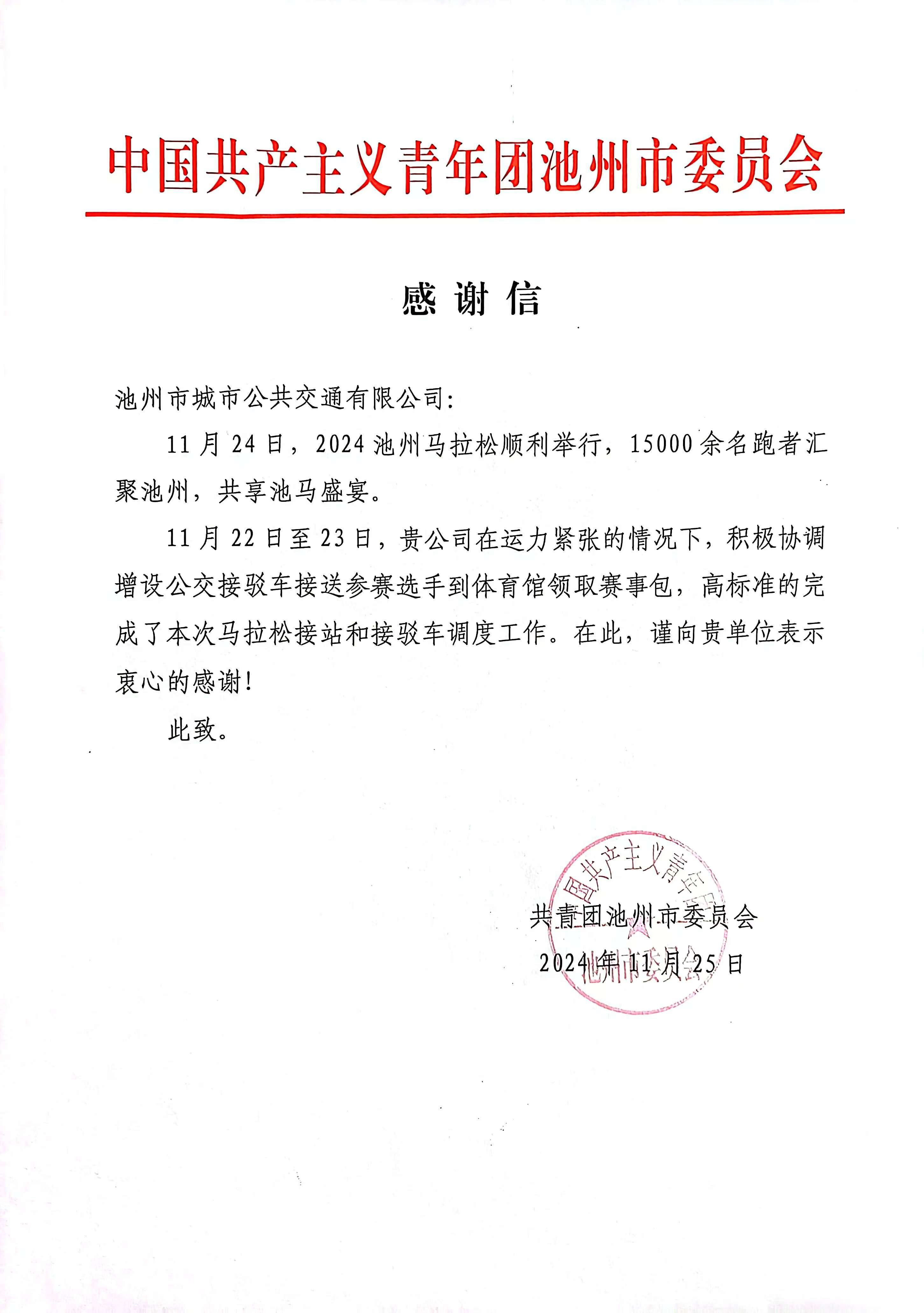 11月22日至24日,池州市城市公交累計(jì)投入馬拉松服務(wù)運(yùn)力94臺,累計(jì)發(fā)出班次331個,累計(jì)服務(wù)乘客約1.1萬人次。這些數(shù)據(jù)背后,是池州市城市公交對池馬“馬”力全開的支持。此次馬拉松的志愿服務(wù)工作展示了城市公交優(yōu)良的工作作風(fēng),受到了共青團(tuán)池州市委、池州馬拉松組委會的表揚(yáng)和廣大參賽選手的充分認(rèn)可。未來,我們將繼續(xù)秉承志愿精神,不斷提升自己的專業(yè)素養(yǎng)和服務(wù)能力!
