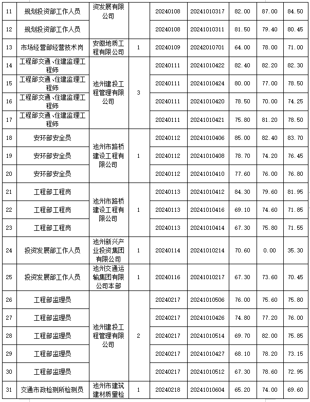 根據(jù)《池州市投資控股集團(tuán)2024年下半年公開招聘工作人員公告》要求,下半年公開招聘面試工作已結(jié)束,現(xiàn)將相關(guān)事宜公告如下。