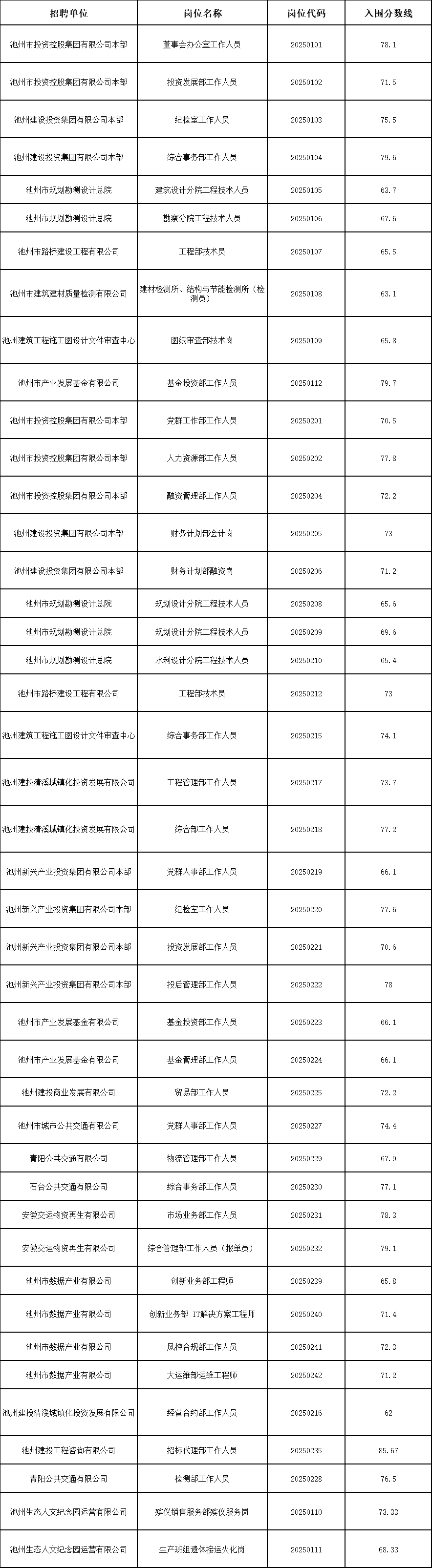 根據(jù)《池州市投資控股集團(tuán)2025年公開招聘工作人員公告》要求,公開招聘筆試工作已結(jié)束,現(xiàn)將資格復(fù)審及面試相關(guān)事宜公告如下。