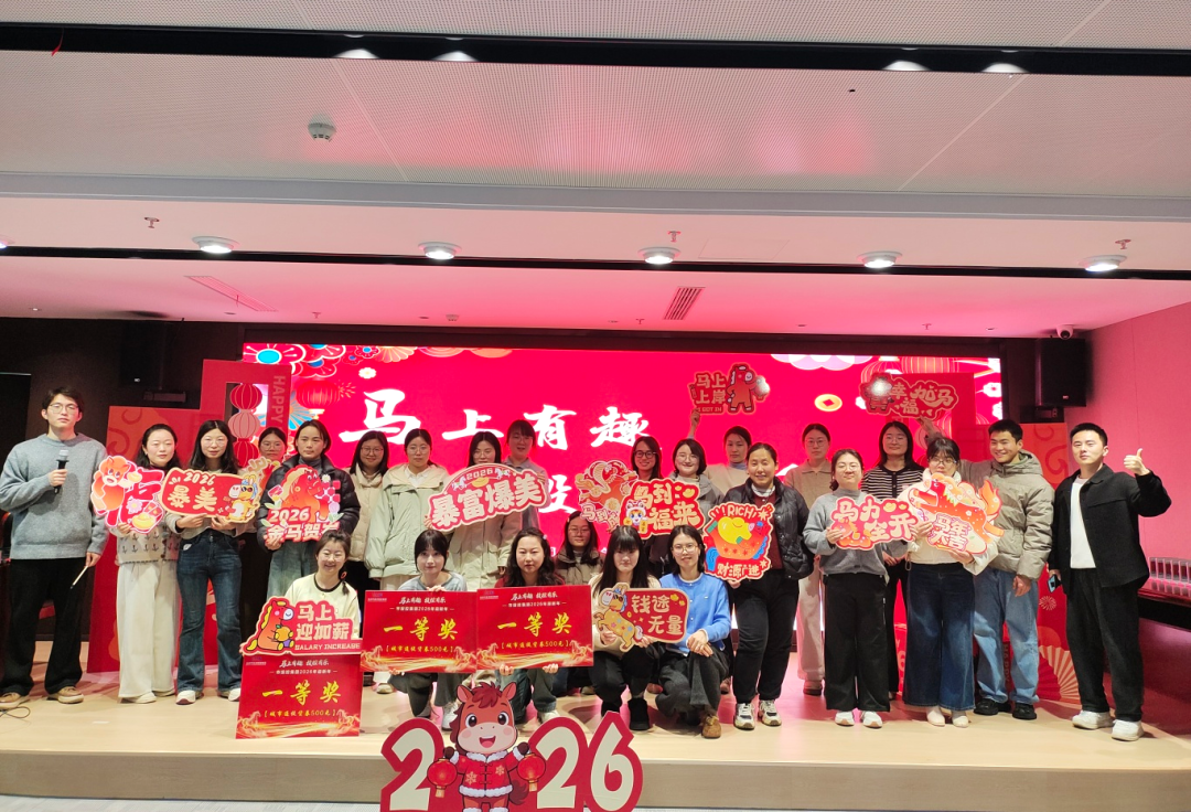 打卡過(guò)后,元宵歡樂(lè)盛宴正式開(kāi)啟,7支隊(duì)伍同臺(tái)參與馬年主題團(tuán)體游戲,花式游戲輪番上陣,全程笑聲不停!大家默契協(xié)作、同臺(tái)比拼,在歡樂(lè)互動(dòng)中攢積分、爭(zhēng)榮譽(yù),賽后順利決出團(tuán)體冠亞季軍,實(shí)力與快樂(lè)雙豐收。
