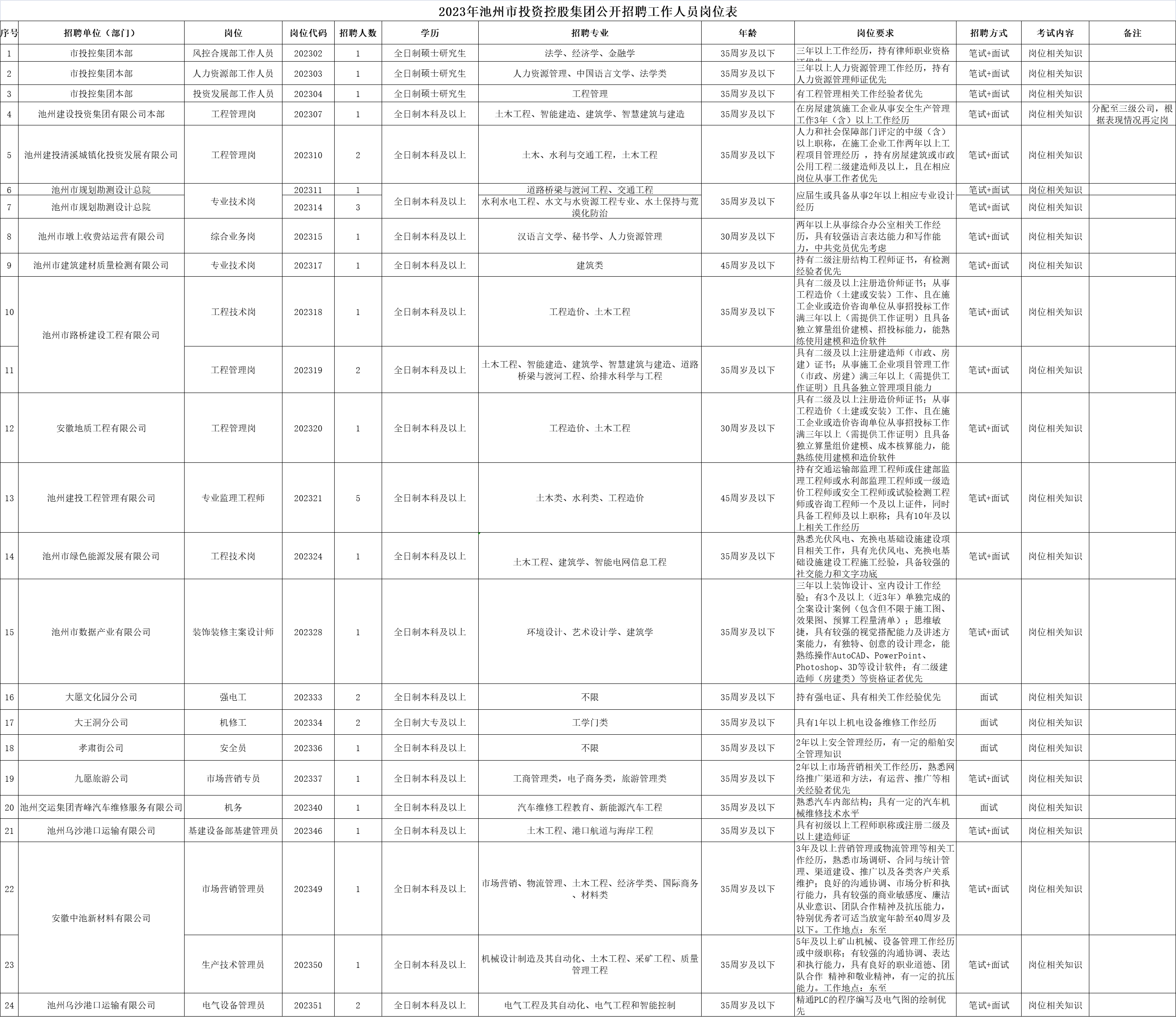 2023年池州市投資控股集團公開招聘報名工作即將結束,截止202391520:00,共有24個職位35個計劃招聘數(shù)暫時無人報考或達不到開考比例,如202391724:00報名時間截止前仍達不到開考比例,將核減或取消該崗位招聘計劃。有意向報名人員請登陸池州人事考試網(wǎng)(http://rskszx.czsrsj.chizhou.gov.cn)報名,審核未通過人員可改報其他符合條件崗位。