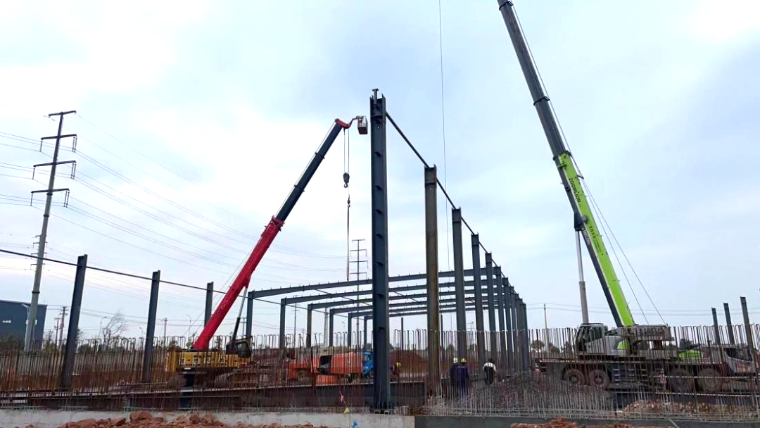 公用型保稅倉(cāng)庫(kù)項(xiàng)目于2023年12月初正式開(kāi)工建設(shè),項(xiàng)目建成后主要提供各種有色金屬及大宗散貨礦產(chǎn)品的倉(cāng)儲(chǔ),報(bào)關(guān),報(bào)檢,報(bào)稅及物流配送等服務(wù)。復(fù)工以來(lái),全體工作人員精神飽滿(mǎn),拿出了開(kāi)工即決戰(zhàn)、起步即沖刺的精神狀態(tài)投入到項(xiàng)目施工中。目前保稅倉(cāng)庫(kù)鋼結(jié)構(gòu)鋼柱鋼梁已搭設(shè)完成,其附屬設(shè)施中制樣間、地磅棚、沉淀池基礎(chǔ)筏板等基礎(chǔ)設(shè)施已基本完成。商發(fā)公司將掛圖作戰(zhàn)、打表推進(jìn)公用型保稅倉(cāng)庫(kù)項(xiàng)目建設(shè),確保項(xiàng)目早建成、早投運(yùn)、早見(jiàn)效。