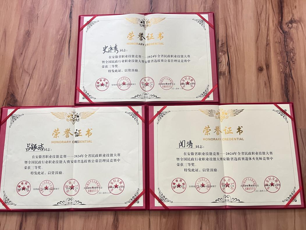 近日,在六安市舉辦的2024年安徽省民政行業(yè)職業(yè)技能競賽圓滿落幕。本次競賽共分公墓管理員和遺體火化師2個賽項(xiàng),池州生態(tài)人紀(jì)念園運(yùn)營有限公司參賽隊(duì)參賽選手史永秀、呂銀潔榮獲公墓管理員賽項(xiàng)個人“三等獎”,聞濤獲遺體火化師賽項(xiàng)個人“三等獎”,其中,遺體火化師賽項(xiàng)是我市首次獲獎。