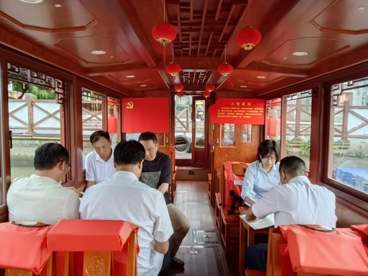 孝肅街置業(yè)有限公司支部全體黨員走進清溪河“紅船”,圍繞支部黨建品牌“孝肅先鋒,紅船領航”開展黨紀教育學習。此次黨紀教育學習選擇在“紅船”舉行,是讓支部全體黨員切身感受“紅船”精神和革命先輩的初心和使命,激發(fā)全體黨員更加深刻領會黨紀的精神實質和核心要義。學習活動結束后,支部全體黨員全體起立,面對黨旗重溫了入黨誓詞。大家紛紛表示“紅船精神”是中國革命精神之源,要堅定理想信念,為公司高質量發(fā)展做出應有的貢獻。